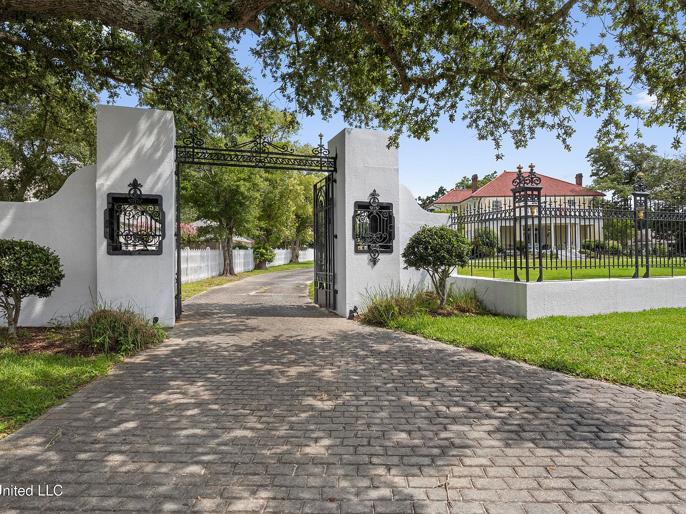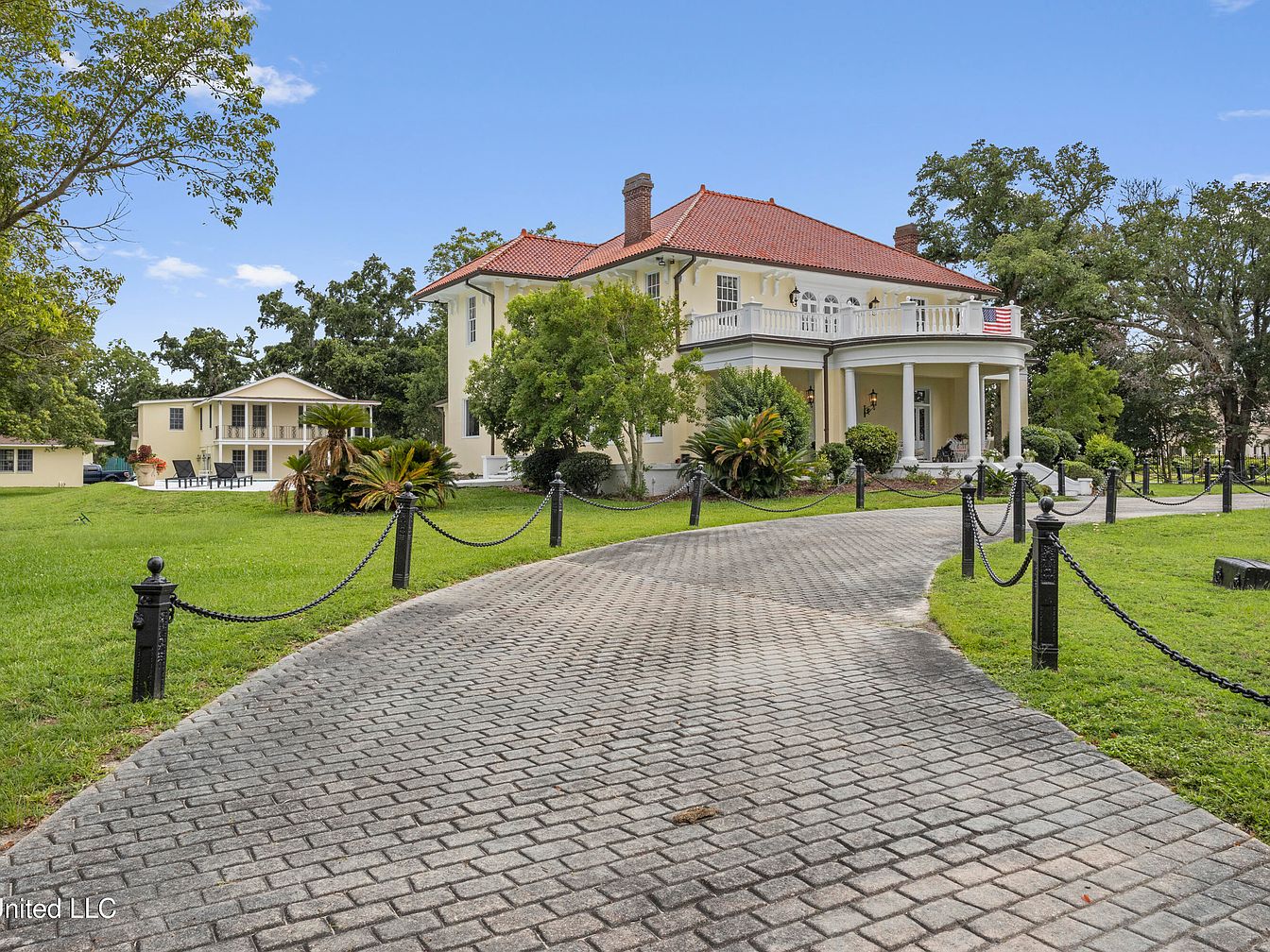 Originally built in 1920, this unique beachfront property in Pass Christian, MS, showcases exquisite architectural elements including a concrete stucco exterior, terra cotta hip roof, and Tuscan-columned portico. Once home to prominent families and serving as the Kern School campus, it holds rich historical significance. The extensive recent renovations feature luxury finishes and a newly remodeled kitchen. Listed for $4,200,000, the residence includes ample living space with three bedrooms, a library, and a sunroom, totaling over 5,000 square feet. The picturesque grounds boast a wraparound porch, pool, and four outbuildings, all set on nearly three-quarters of an acre, with additional land available. Its charming aesthetic complements the allure of Gulf Coast living.