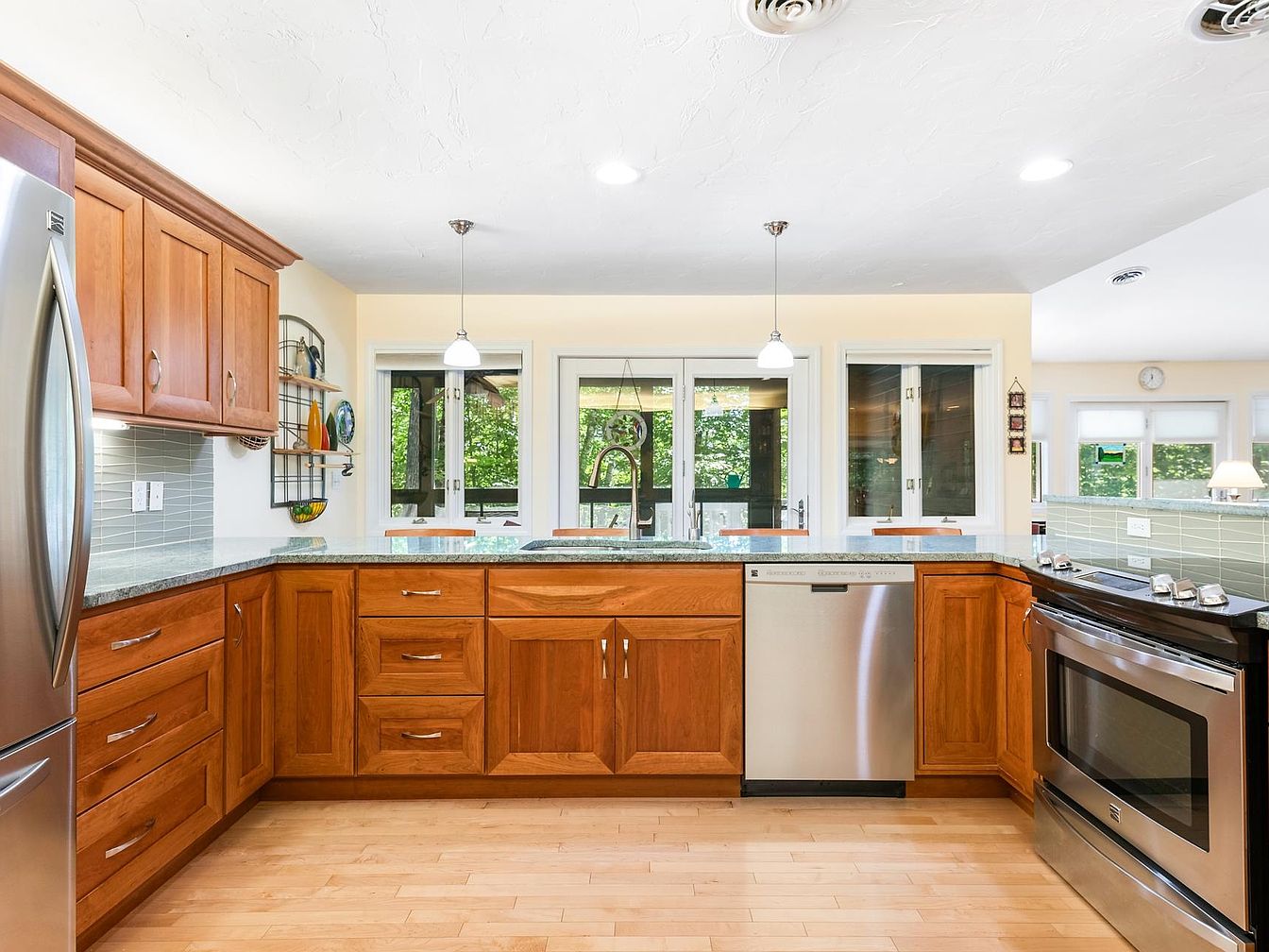 This waterfront home in Grantham, NH, offers seasonal lake views and combines modern amenities with historical charm. Built in the early 20th century, the residence showcases an updated architectural style featuring a light-filled open floor plan. Significant renovations include a brand-new kitchen with granite countertops and stainless steel appliances, alongside a luxurious first-floor primary suite. The home boasts a total square footage of approximately 3,000, including a spacious finished lower level with a family room and additional bedrooms. Priced at $1,100,000, it offers accessibility features like an elevator, a scenic screened porch, and access to Eastman’s recreational activities, making it a perfect retreat in the Dartmouth-Lake Sunapee Region.