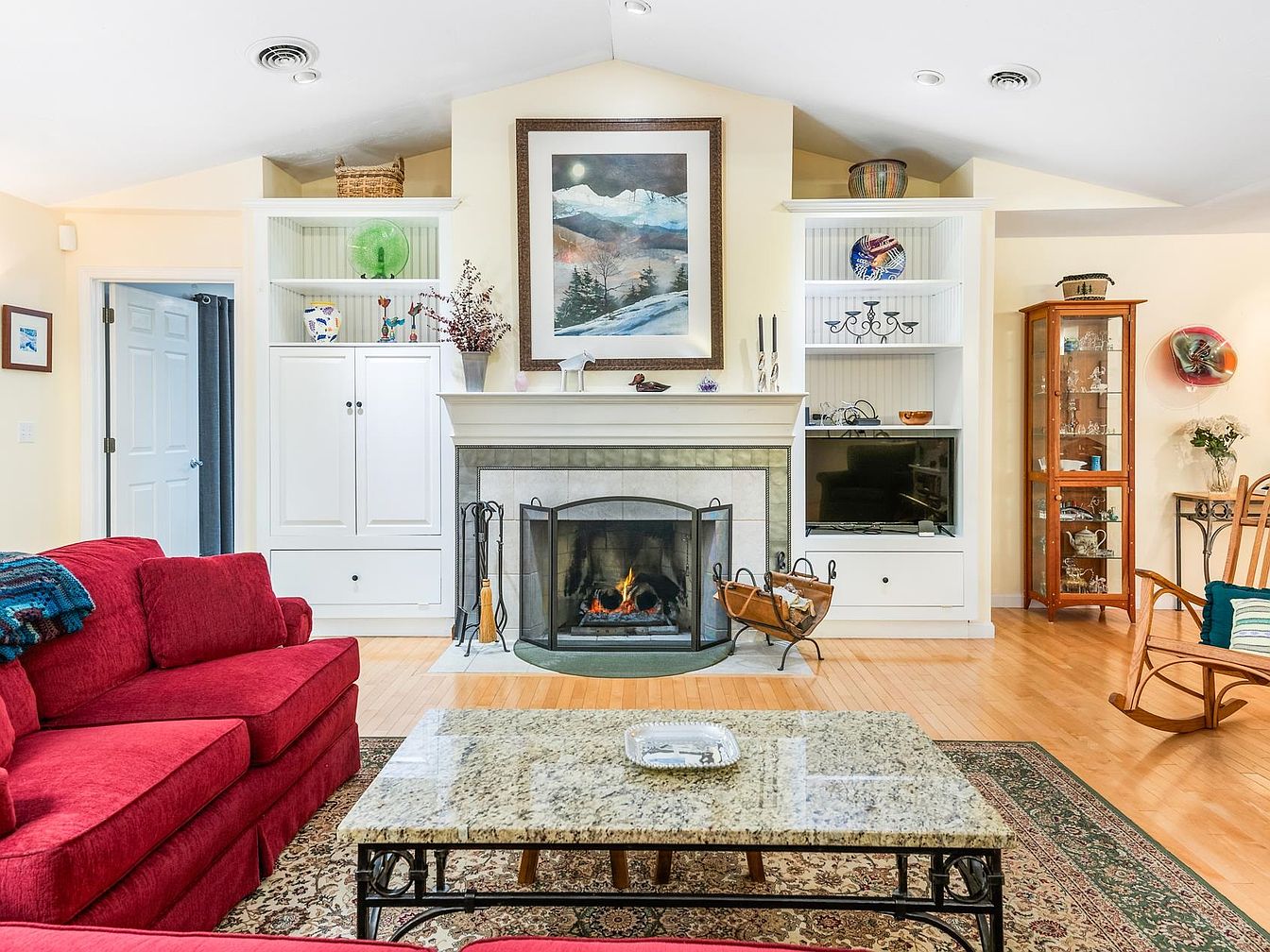 This 1999 Waterfront Retreat in Grantham, New Hampshire, with a Stone Fireplace and an Accessible Design for Modern Living