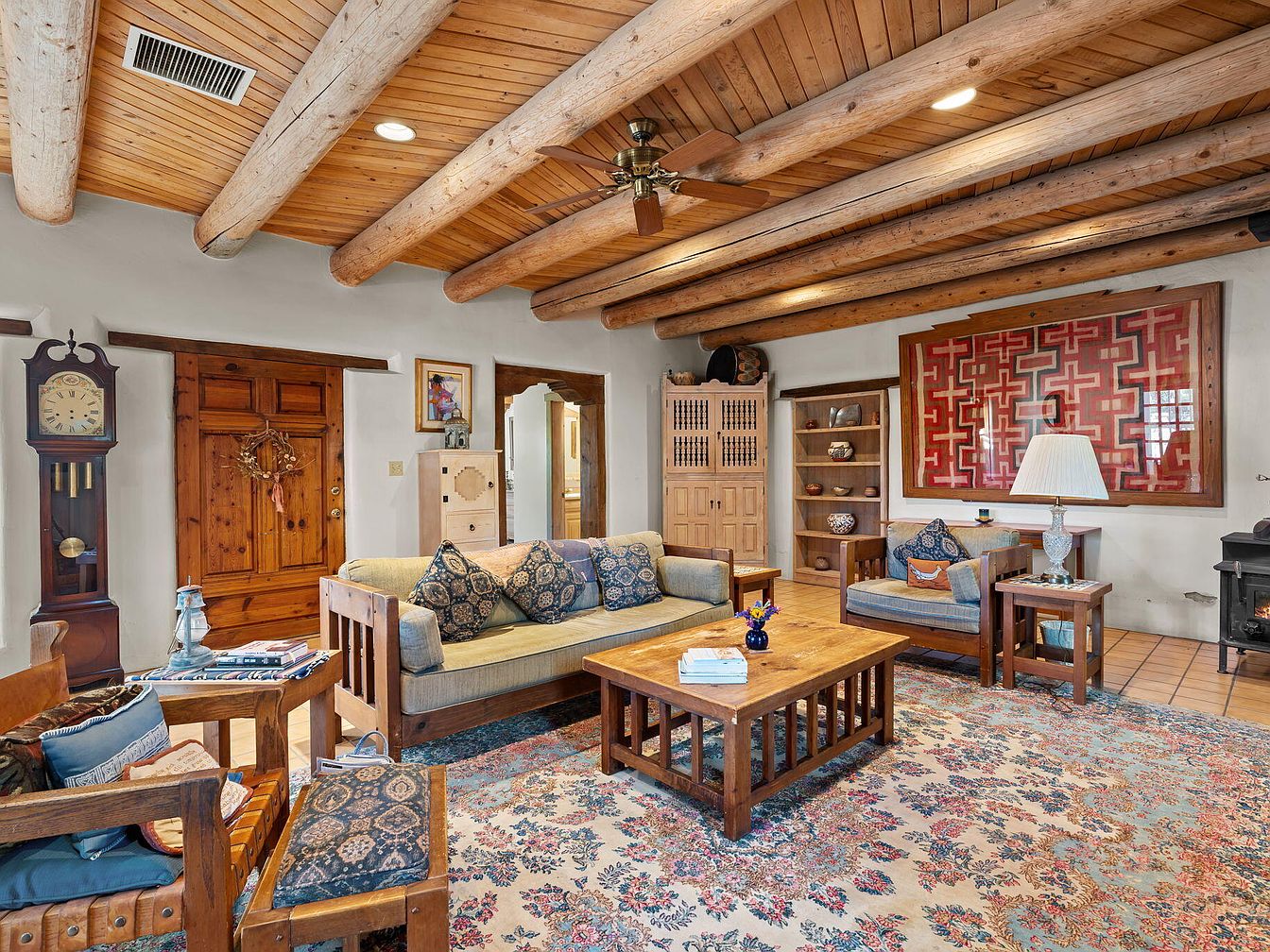 This remarkable equestrian estate in Corrales, NM, celebrates the craftsmanship of Cleofas Padilla, originally built as a guard shack to a pre-statehood hacienda. The adobe home reflects authentic regional heritage, incorporating original features alongside modern enhancements. Its architectural style showcases traditional adobe construction with hand-peeled vigas and Talavera tiles, harmonizing historic significance with contemporary living. Currently listed at $4,550,000, the estate offers extensive grounds suitable for equestrian and agricultural activities. Although the exact year of construction remains unspecified, the property undoubtedly embodies timeless Corrales legacy. Key features include a vast plot area and ample square footage, complemented by ongoing renovations that maintain its historic charm while accommodating modern conveniences.