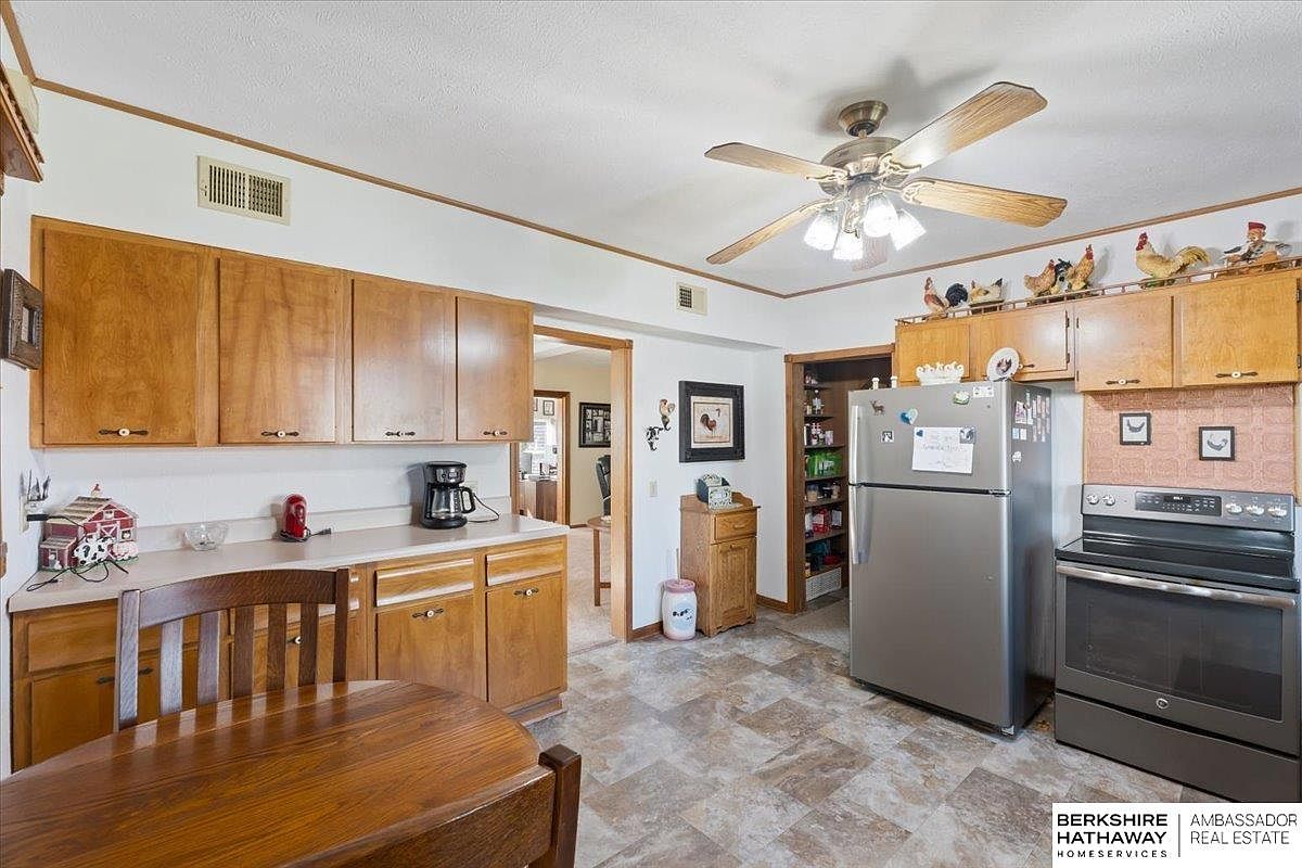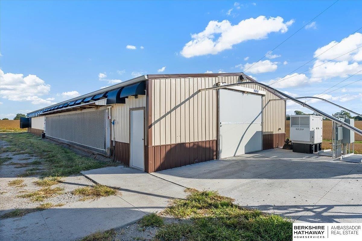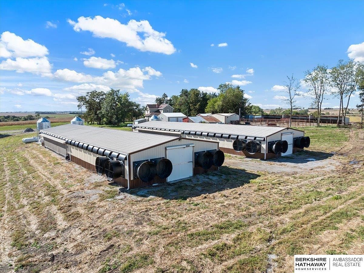 This captivating farmhouse, situated on 4.7 acres near Avoca, Nebraska, beautifully blends modern innovation with historical charm. Constructed in the early 1900s, its architectural style reflects classic farmhouse design, featuring a cozy porch and spacious layout. Recently renovated, the property offers a high-tech livestock facility built in 2021, equipped with advanced climate control for diverse agricultural operations. The home boasts two bedrooms and two bathrooms across its generous square footage, all for a listing price of $1,300,000. The land includes ample outdoor facilities for 4-H projects and small livestock, complemented by operational efficiencies like automatic poultry feeders. This unique setup makes it ideal for both personal enjoyment and agricultural enterprise.