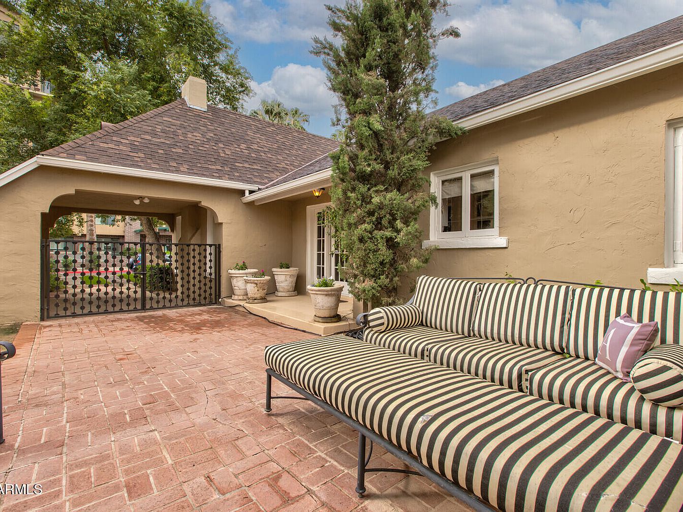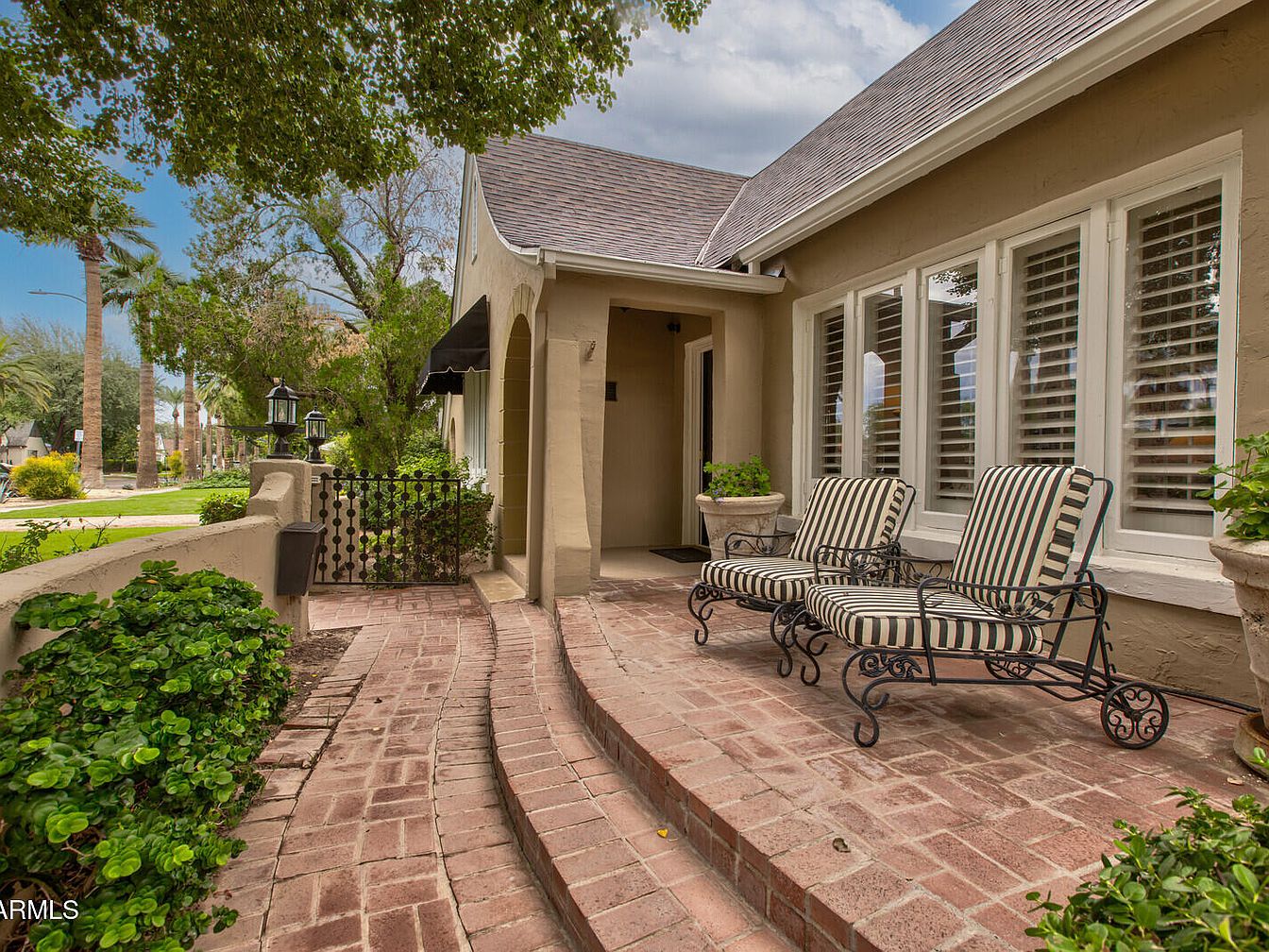 This exquisite 1927 Tudor Revival, known as the P.W. Womack house, is a cornerstone of the Willo Historic District in Phoenix, Arizona, blending French-inspired elegance with period charm. Recognized for its steep-pitched gable roof, arched stone-trimmed entry, and porte-cochère, the home boasts lush landscaping by Benjy Levinson, custom 1920s-style ironwork, and featured appearances in Phoenix Home and Garden. Original hardwoods, coved ceilings, a vintage O’Keefe Merritt stove, and a designer-refurbished living area highlight its historic integrity. Recent upgrades include a brand new roof and fresh exterior paint. Listed at $1,099,000, this property offers walkable access to Midtown amenities, though specific plot area and square footage are not provided in the overview.