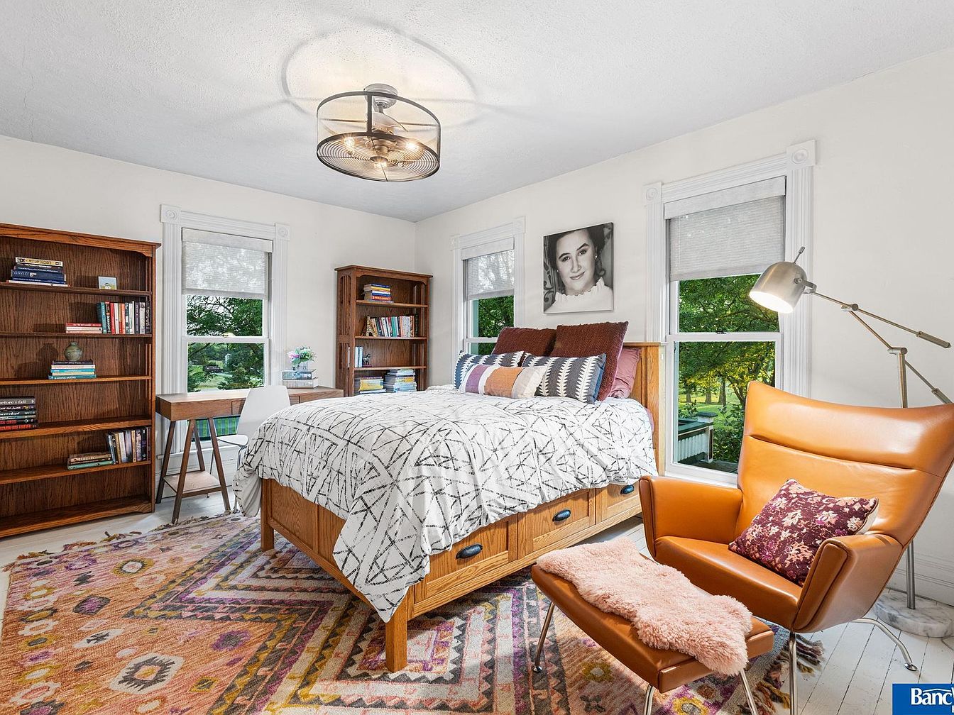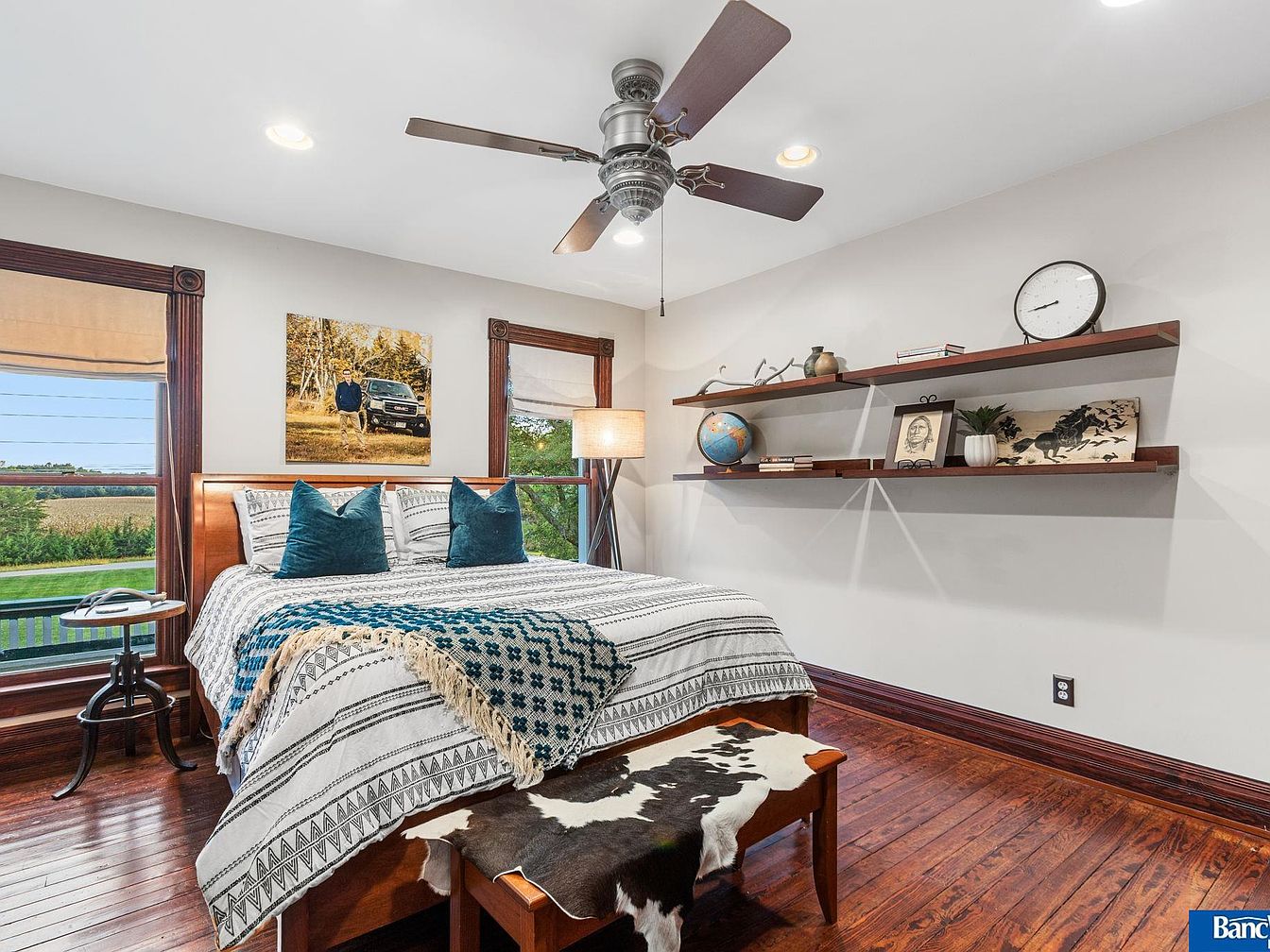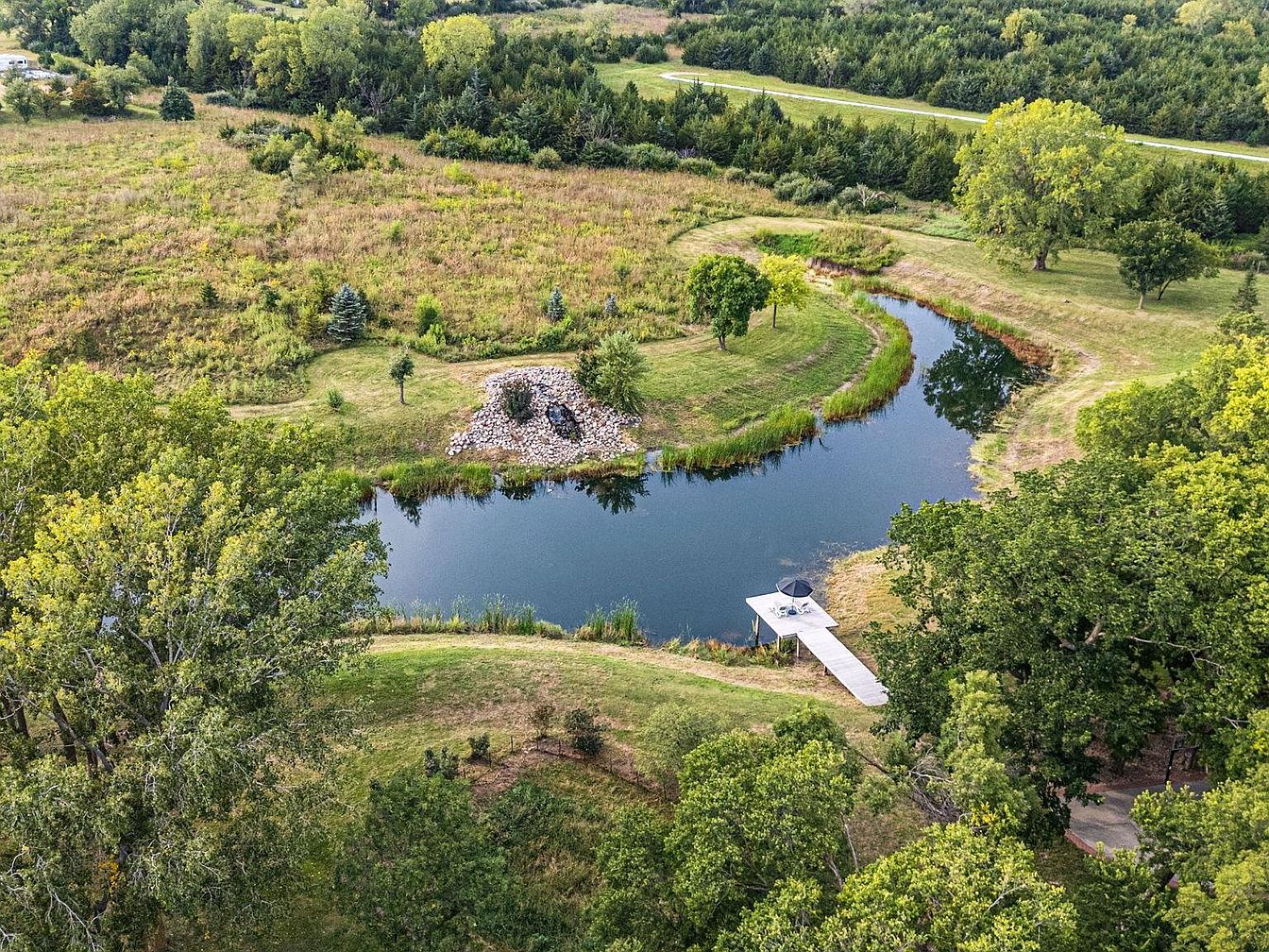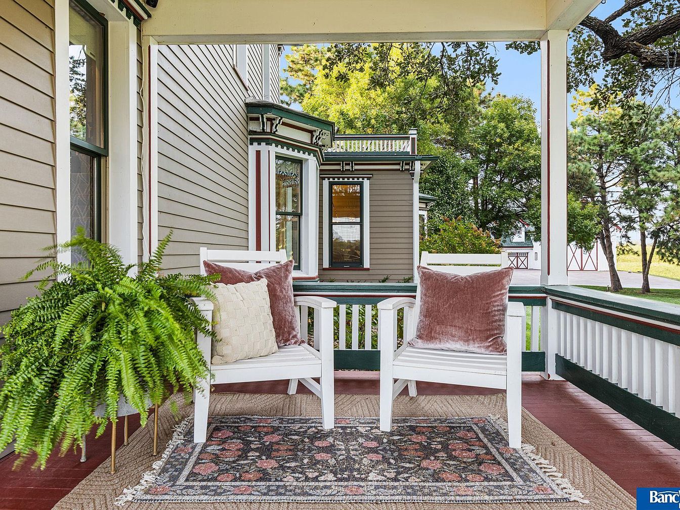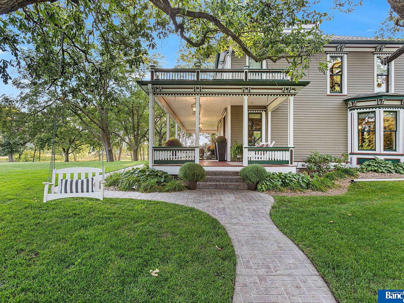 This historic estate in Hickman, NE, blends timeless elegance with modern amenities in a spacious layout of 7 bedrooms and 5 bathrooms, set on a stunning 7.5 acres. Built in the late 19th century, its architectural style reflects classic craftsmanship, evident in detailed staircases, ceiling work, and four fireplaces. Recent renovations maintain its old-world charm while incorporating contemporary conveniences. A captivating sunroom offers views of an acre pond, enhancing the serene ambiance. Listed at $1,950,000, the property also features a versatile Sand Creek barn for events or additional uses. The total square footage provides ample living space, making it a rare gem minutes from South Lincoln, with an option for an adjoining 7 acres.