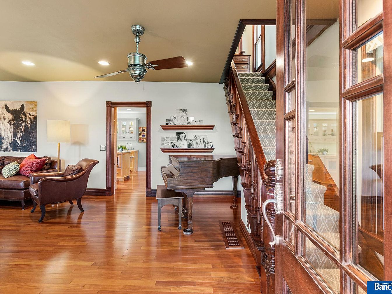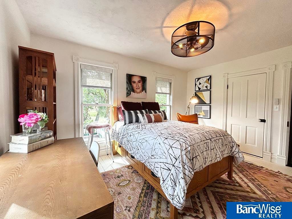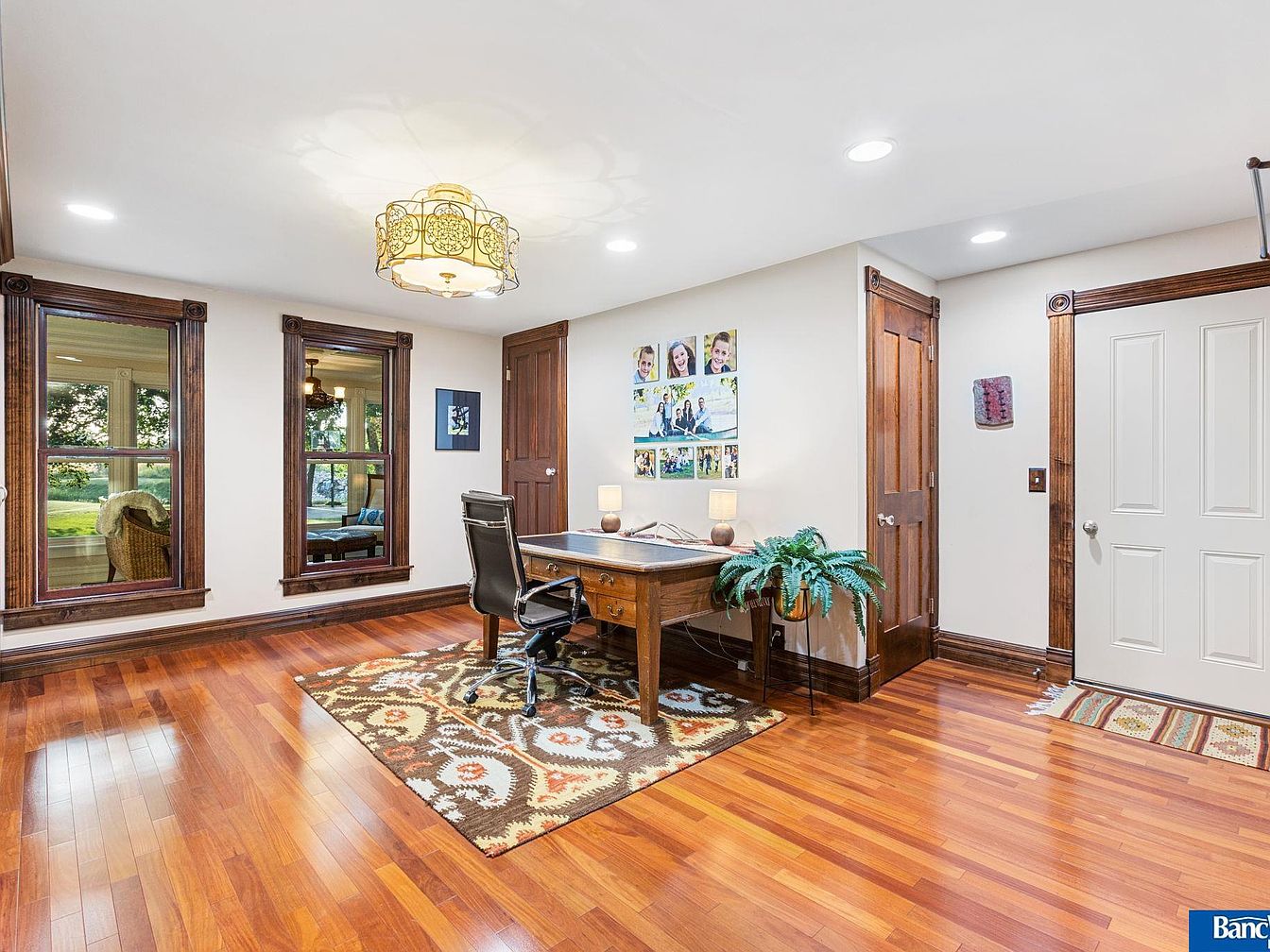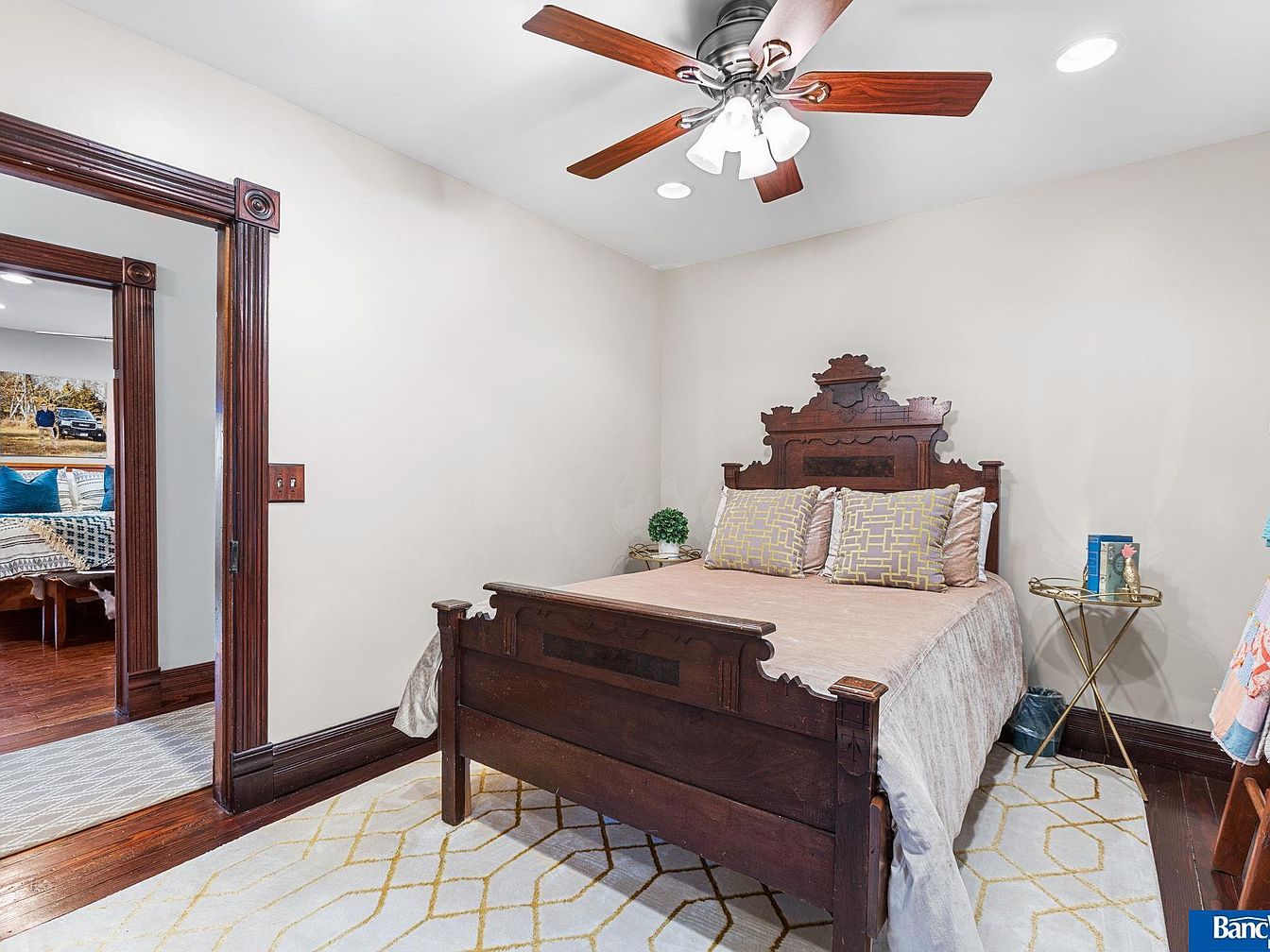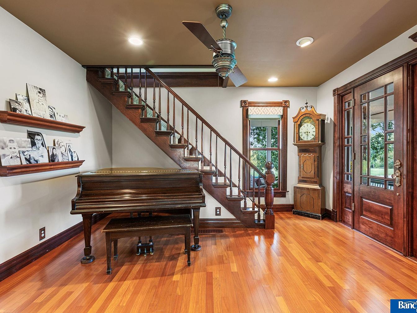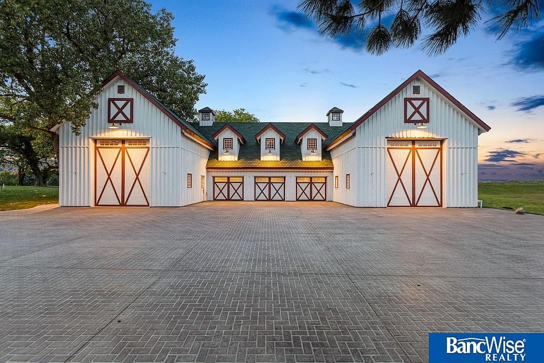 This historic estate in Hickman, NE, blends timeless elegance with modern amenities in a spacious layout of 7 bedrooms and 5 bathrooms, set on a stunning 7.5 acres. Built in the late 19th century, its architectural style reflects classic craftsmanship, evident in detailed staircases, ceiling work, and four fireplaces. Recent renovations maintain its old-world charm while incorporating contemporary conveniences. A captivating sunroom offers views of an acre pond, enhancing the serene ambiance. Listed at $1,950,000, the property also features a versatile Sand Creek barn for events or additional uses. The total square footage provides ample living space, making it a rare gem minutes from South Lincoln, with an option for an adjoining 7 acres.