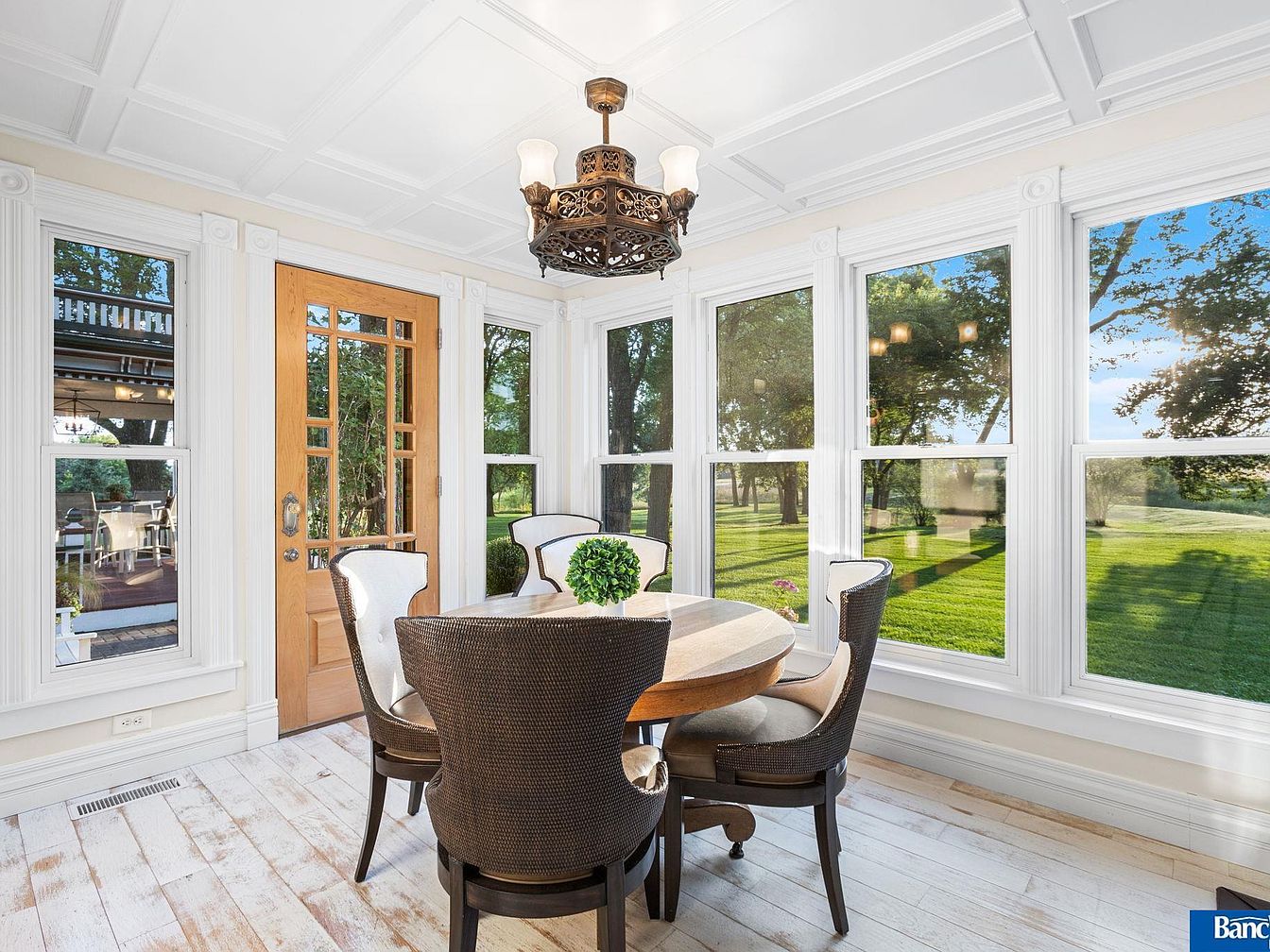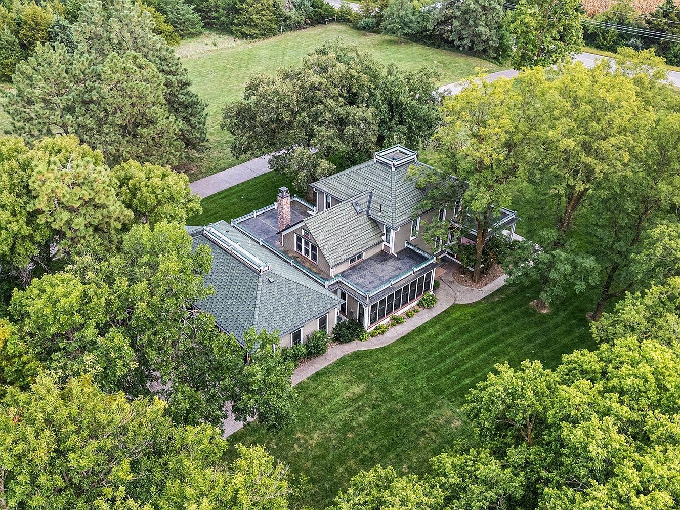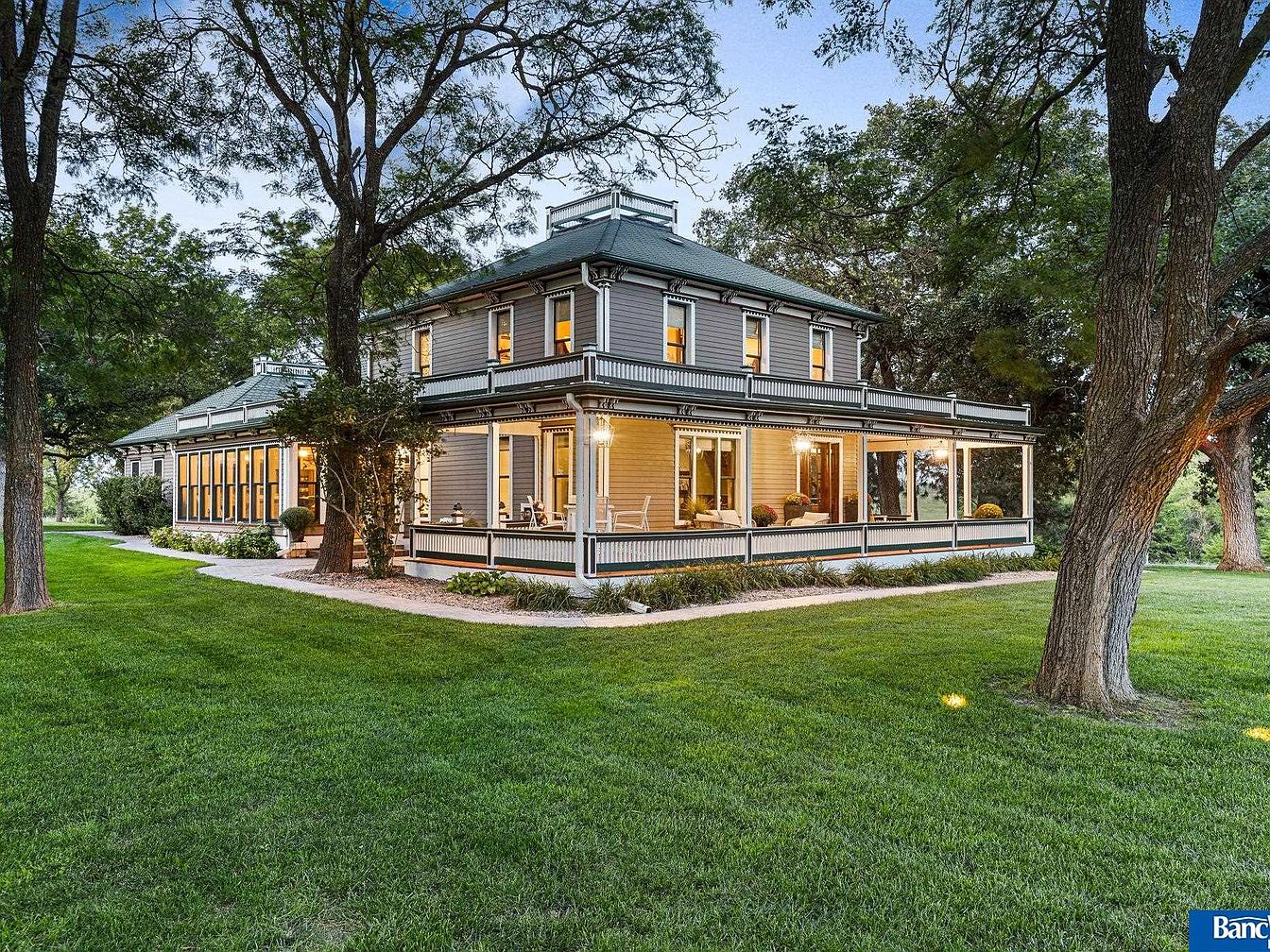 Visit This Elegant 1900 Estate in Hickman, Nebraska, Featuring 7 Bedrooms, 4 Fireplaces, and a Stunning One-Acre Pond