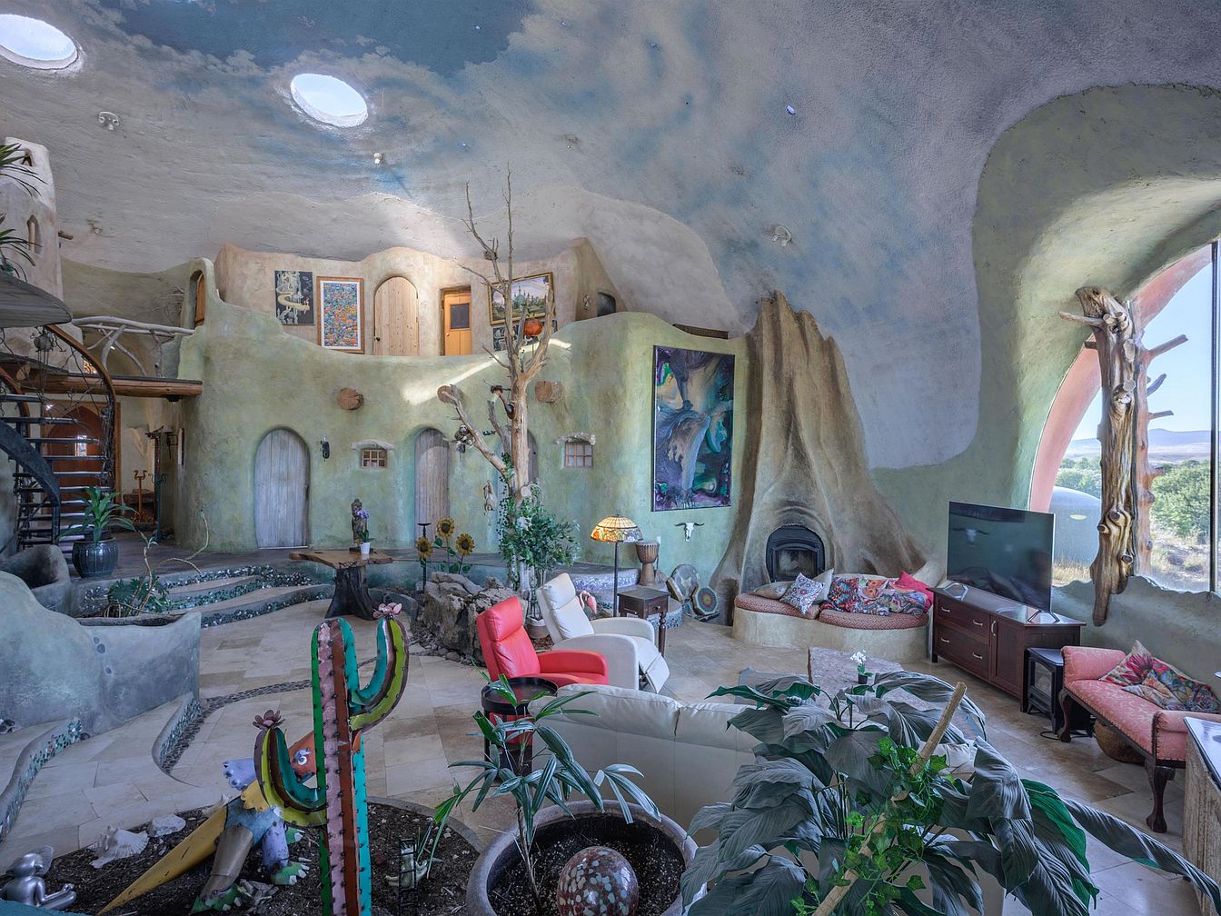 Whimsical 1980 Architectural Masterpiece in Taos, New Mexico with 35-Foot Ceilings, 3.5 Eclectic Baths, and High-Desert Views