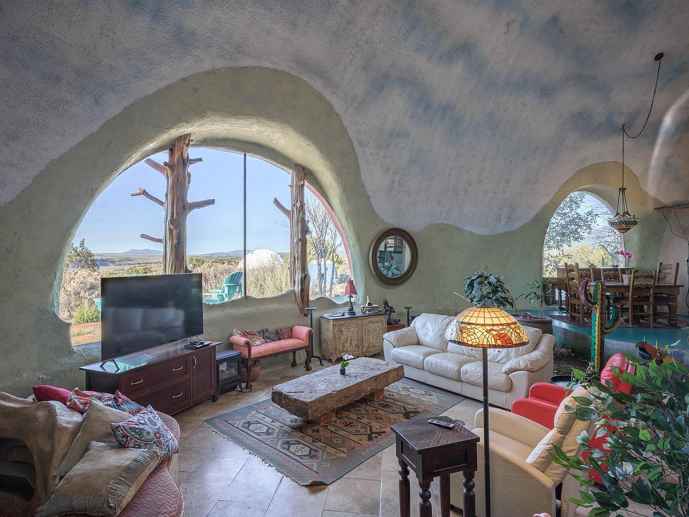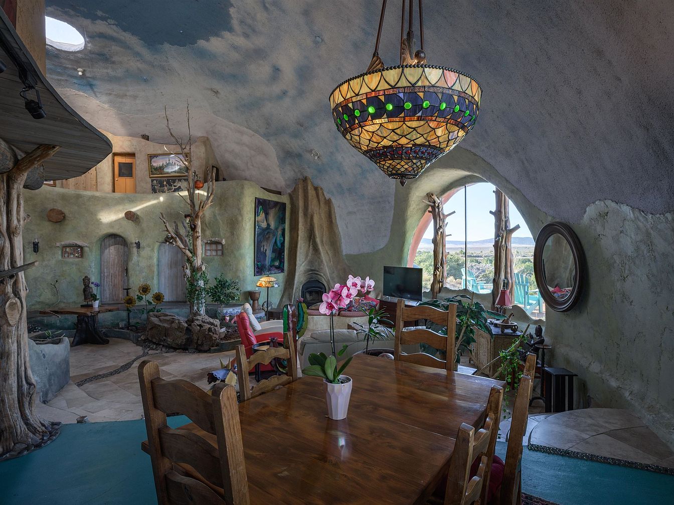 Nestled on over five pristine acres in El Prado, New Mexico, “The Dreaming Dome” offers a whimsical escape rooted in sustainability and creativity. Designed in a monolithic structure, this eco-friendly residence features 35-foot ceilings and handcrafted details inspired by the lush rainforests of Costa Rica. While the home’s exact year of construction is unspecified, its unique style embodies a blend of modern and adobe influences, contributing to its historical significance. Recently listed for $1,420,000, it boasts three bedrooms, 3.5 bathrooms, and impressive living spaces including a yoga dome and private hot tub deck. Spanning ample square footage, the enchanting estate invites exploration amid the scenic backdrop of the high desert.